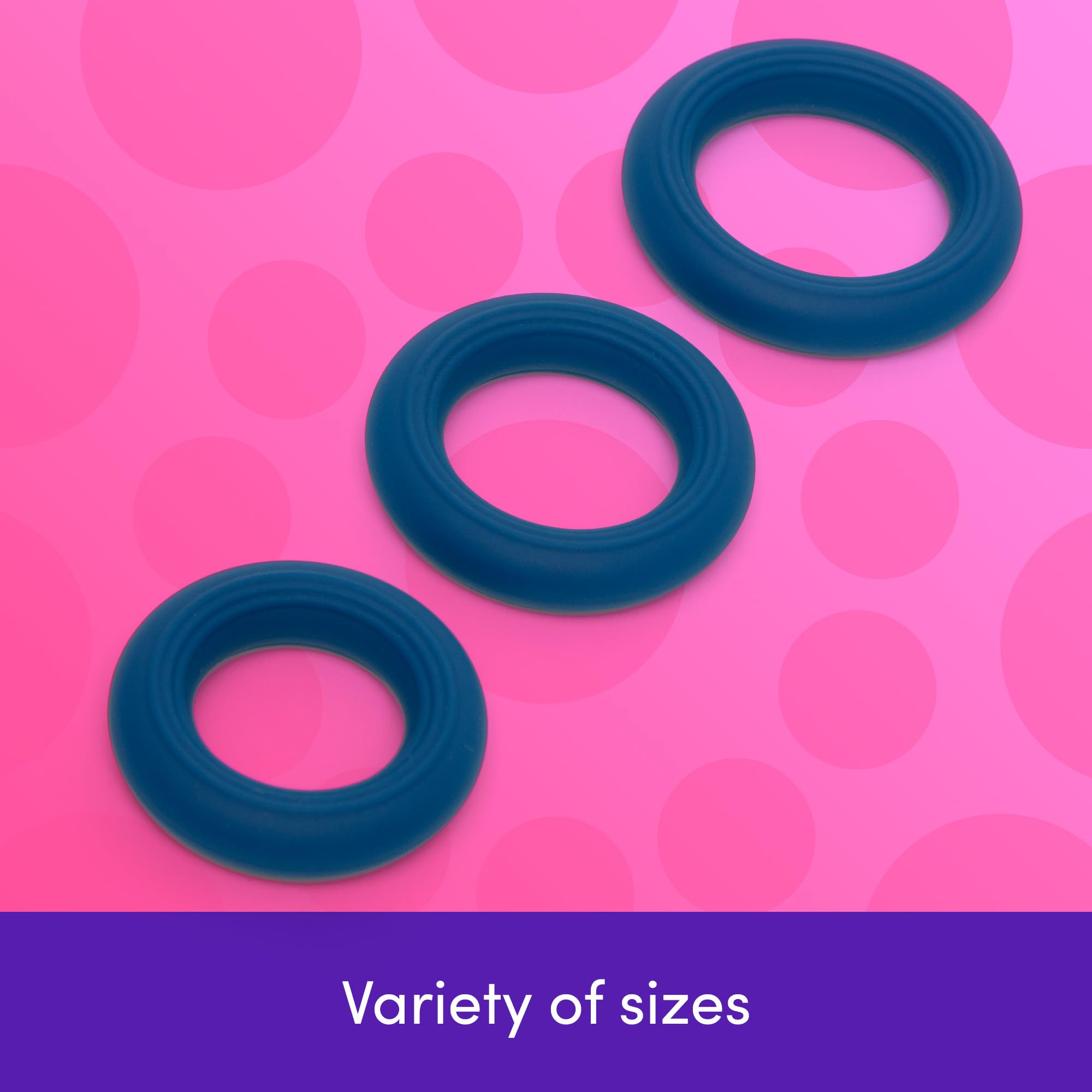 - MULTI-SIZE COCK RINGS FOR CUSTOM FIT: Includes three incrementally sized penis rings for tailored comfort and pressure. Wear individually or combine around the shaft and testicles to explore stronger support, better blood flow, and improved control.