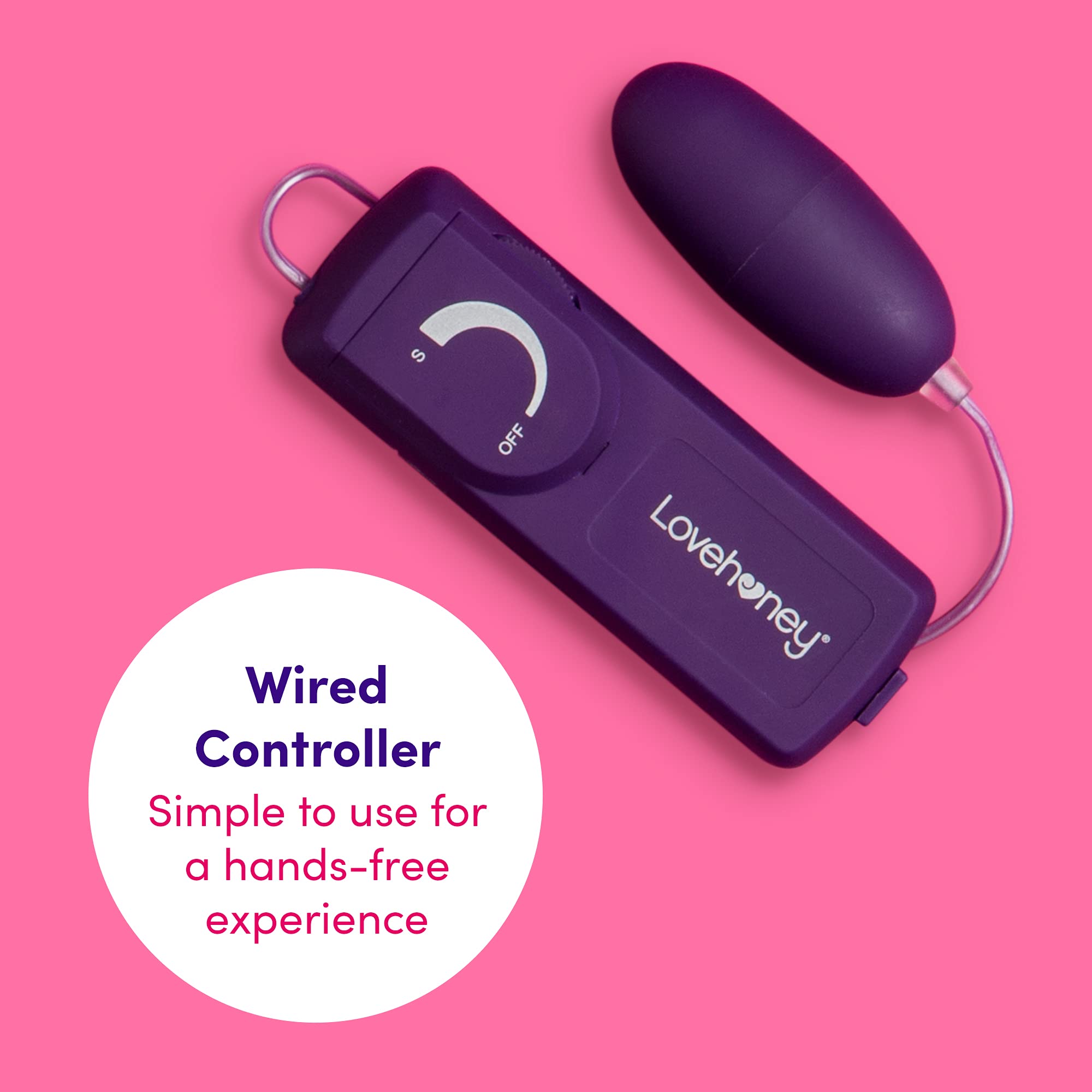 Lovehoney Wickedly Powerful Vibrating Egg for Women - Smooth 2.5 Inch Multispeed Bullet Vibrator - 31 Inch Wired Remote Control Love Egg for Couples - Purple